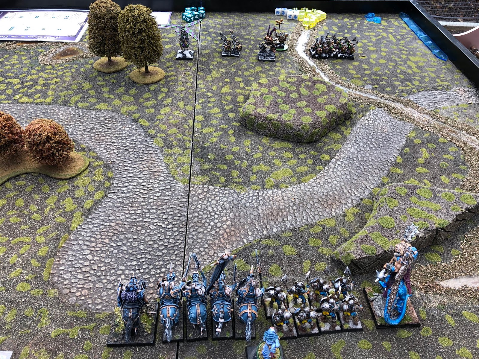 Then the Dwarves Gyrocopter (flying war- machine) sniped at the mounted heathguard and caused two casualties.