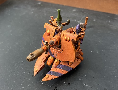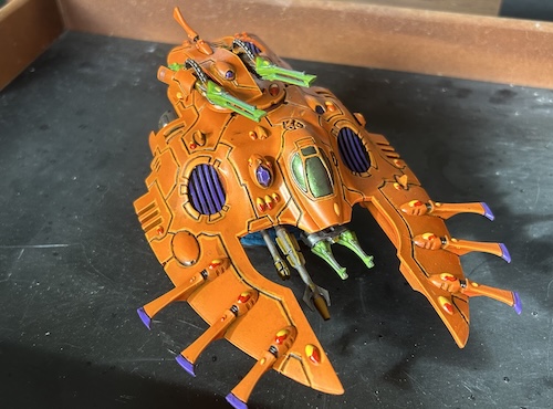 - I used a brush to applied Vallejo colour shift paint on the Wave Serpents’ cockpit (as it had been undercoated black)